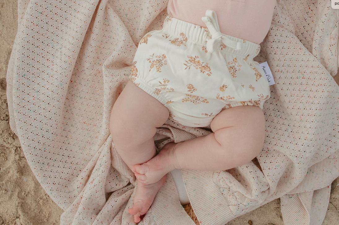 Made from GOTS certificated organic cotton. This hand-illustrated bloomer features a gentle elastic waistband, tie drawstring and larger sizing.