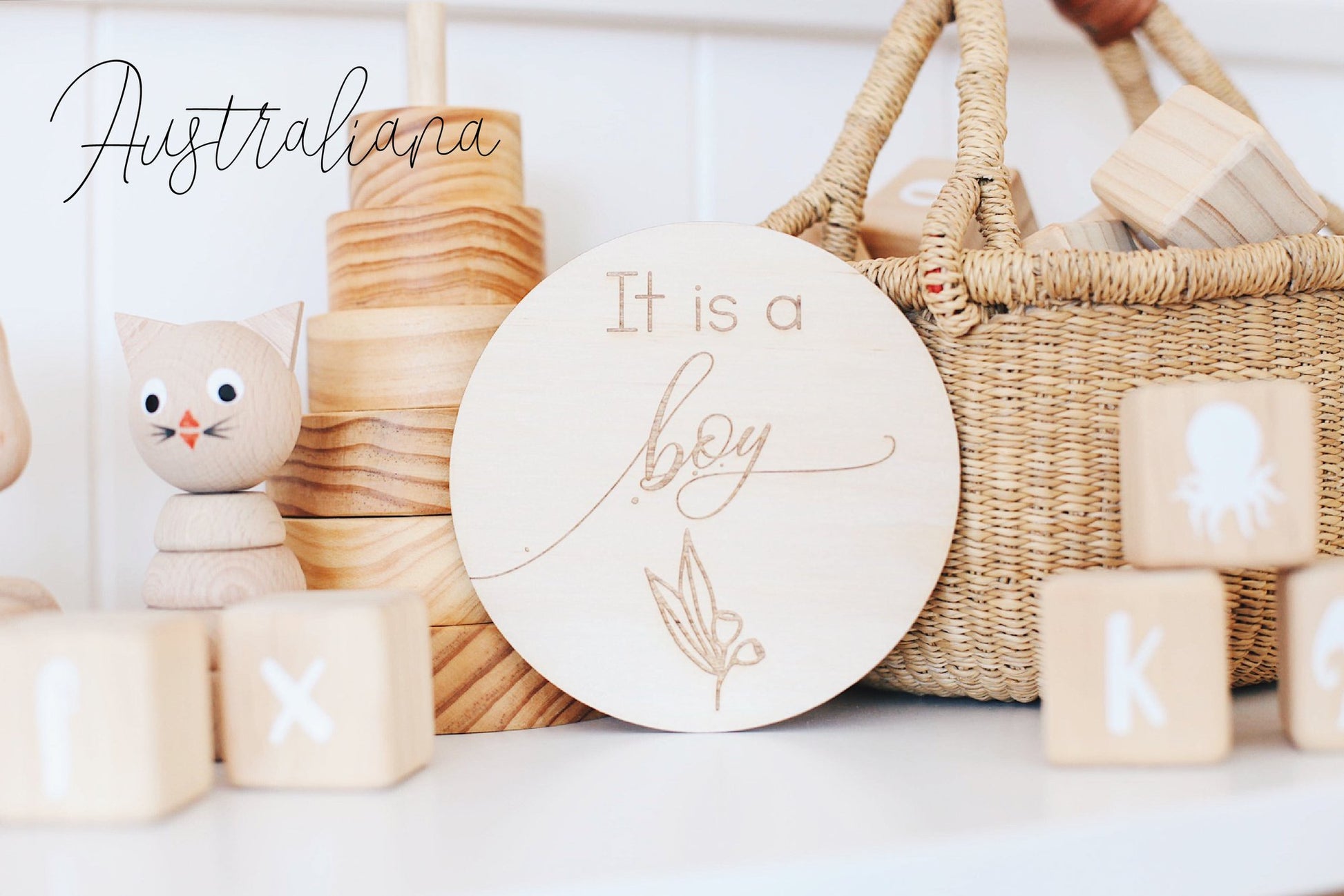 Mark your memories and share your baby's milestone announcement in your own unique way with these single wooden announcement discs. These announcement statement pieces are the perfect addition for your images, flatlays, shelves or nursery to tell and share your story with friends and family.