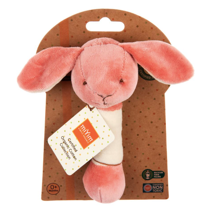 MiYim's organic plush stick rattles are made from 100% certified organic and natural cotton. There is no compromise on design, aesthetic or environmental credibility with these super soft baby rattle toys.